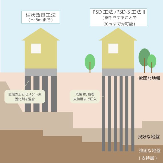 軟弱層厚・支持層深度が不均一な地盤に有効