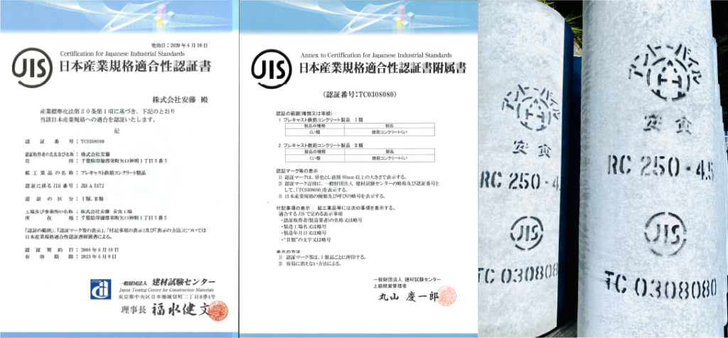 当社RCパイルは、鉄筋・砂・砕石・セメントすべてにおいてJIS規格にて管理しております。