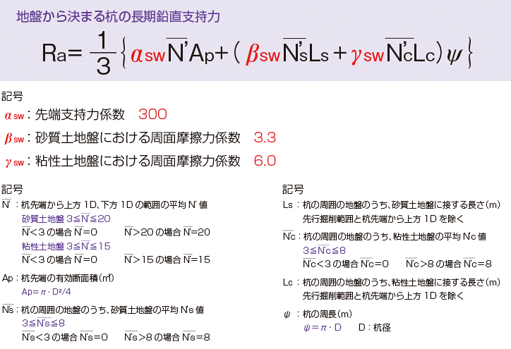 粘性土の場合 N’=3Wsw+0.050Nsw