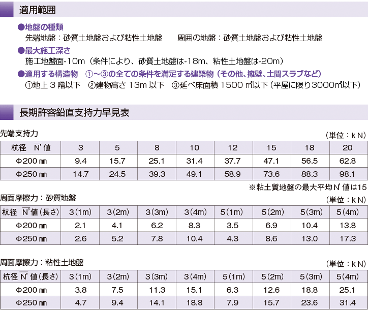 スクリューウエイト貫入試験の換算N’値により杭の支持力を算定します。